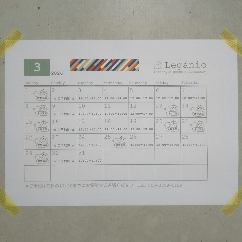 3月の営業スケジュールをお知らせいたします。