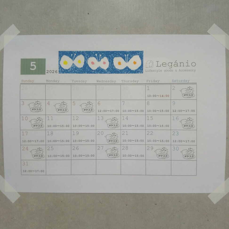 5月のスケジュール 5月の営業スケジュールをお知らせいたします🎏 5/1(金)→14:00までの営業となります。 5/6(水)→祝日営業 5/17(日)→日曜営業5/31(日)→日曜営業! 風薫る5月、爽やか♪5月もどうぞよろしくお願いいたします🐻 2026年4月28日 投稿先 news 5月 営業スケジュール 営業スケジュールのお知らせ 目白 雑貨とアクセサリー ← 過去の投稿へ コメントを残す コメントをキャンセルメールアドレスが公開されることはありません。 * が付いている欄は必須項目ですコメント 名前 * メール * サイト 次回のコメントで使用するためブラウザーに自分の名前、メールアドレス、サイトを保存する。 Δemail confirm* post date* 日本語が含まれない投稿は無視されますのでご注意ください。(スパム対策)